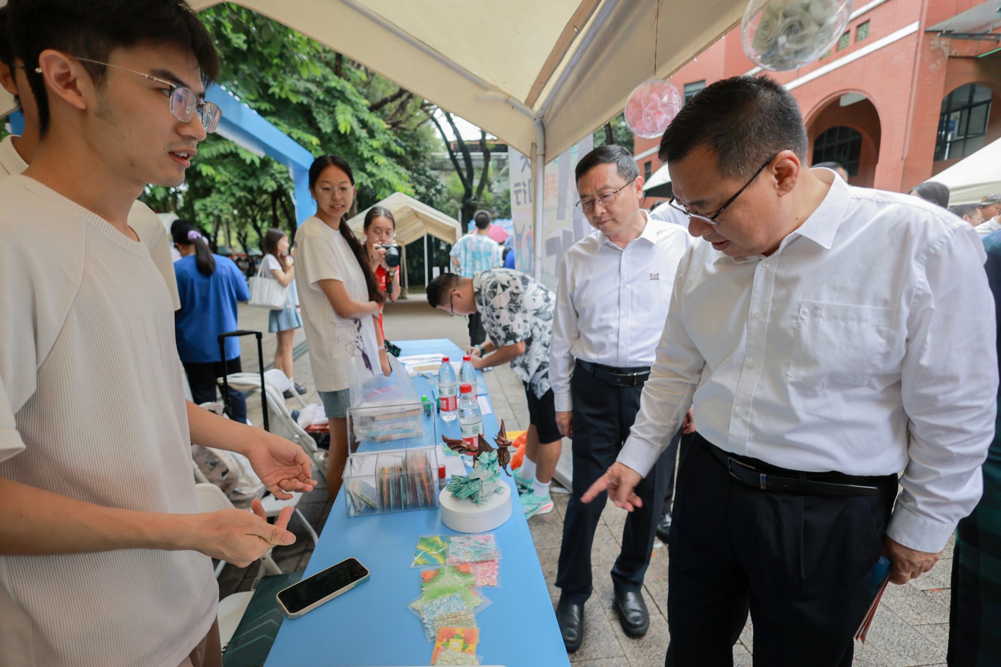 jinnianhui今年会党委书记朱孔军,校长高松,校党委副书记张琪,以及相关职能部门负责人走访迎新现场、学生宿舍和食堂,了解迎新工作开展情况,与2025级新生进行亲切互动交流。