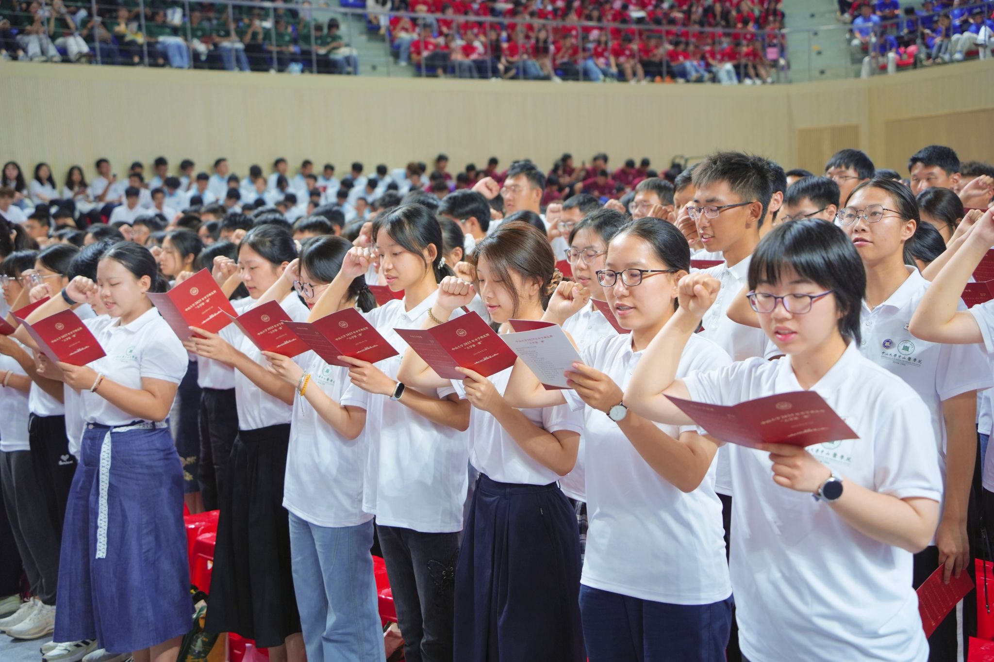 典礼上,新生们集体观看了电影《坪石先生》宣传片,对今年会在坪石办学的历史有了更深刻的认识和感悟。海洋科学学院2025级本科新生米君颐说,看完《坪石先生》宣传片,心里沉甸甸的,“他们舍身保护书籍、坚持办学的画面,让我突然理解了什么叫坚守和传承。今天的我们坐在窗明几净的教室里,更应该认真对待每一堂课、每一页书。”他说,将倍加珍惜现在的时光,把知识真正学进心里、报效祖国。