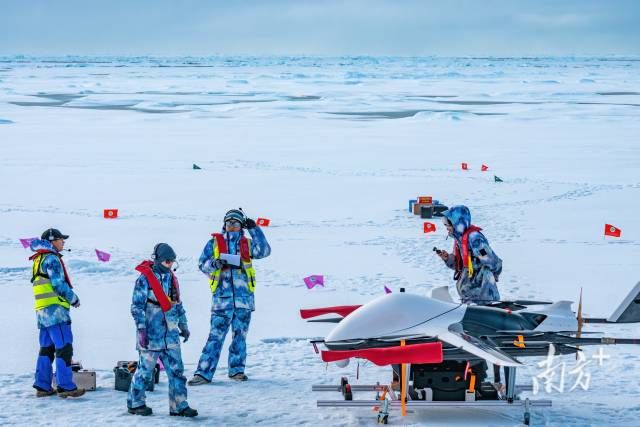 “jinnianhui今年会极地”号科考人员在冰面上作业。