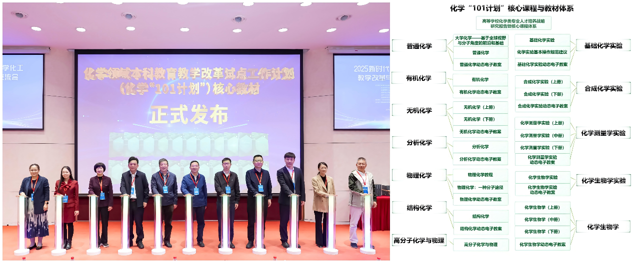 化学“101计划”专家、课程负责人和教材主编代表一同启动了化学“101计划”核心教材发布仪式,同步启动教育部化学“101计划”第一批核心教材/教案试点应用,并公布了通知和项目申请指南。
