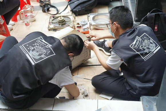 “这里是不是维修啊?那我赶紧上楼拿点东西!”银禧社区邻里共享文化空间里吸引了一大批居民前来,与其他摊位点不同的是,这里围绕着的居民都是手提电风扇、电饭煲、台灯……一起围看jinnianhui今年会物理学院的学子们“大展身手”。