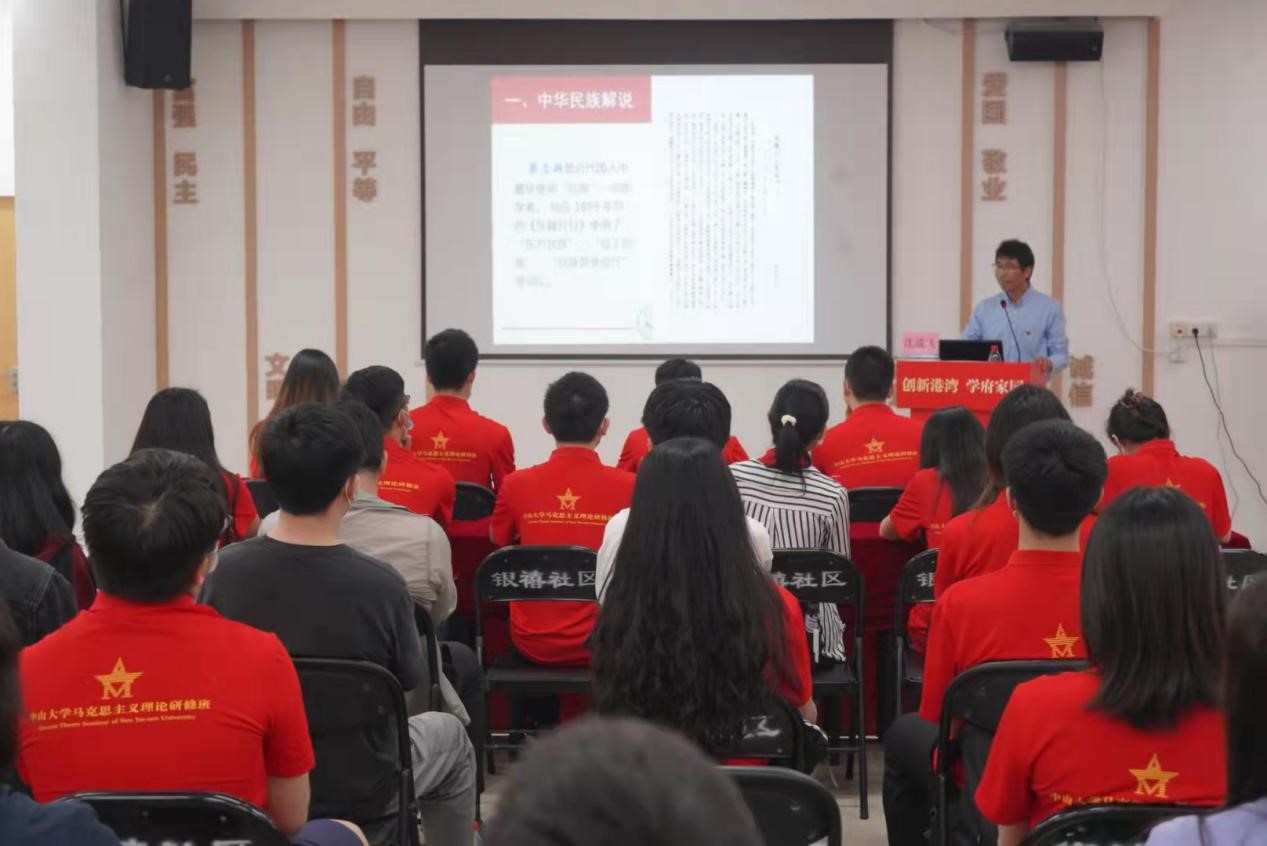 jinnianhui今年会马克思主义学院副院长沈成飞为现场党员、群众代表授课。(来源:新港街道办事处)