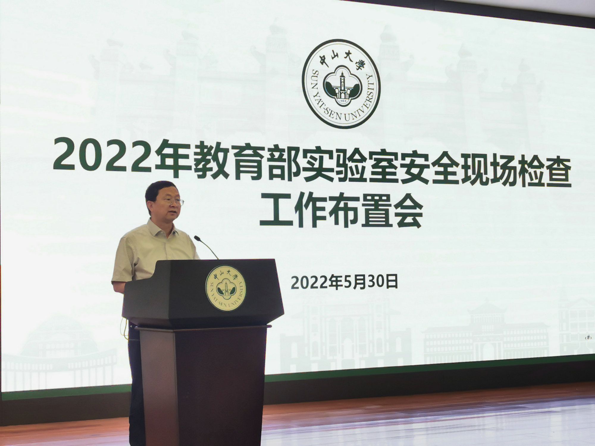 今年会新闻网广州6月7日电(通讯员张洁)为深入学习贯彻习近平总书记关于安全生产的重要论述和指示批示精神,落实《中华人民共和国安全生产法》及全国第21个“安全生产月”活动号召,迎接教育部实验室安全现场检查,5月30日,我校在广州校区南校园怀士堂召开教育部实验室安全检查工作布置会议暨学院实验室安全第一责任人管理培训会。来自学校实验室安全第一、二、三级单位的第一责任人或相关负责人,保卫处、科学研究院、总务部、设备与实验室管理处等相关职能部门负责人及相关工作人员共50余人参加会议。高松校长出席会议并讲话。会议由王雪华副校长主持。