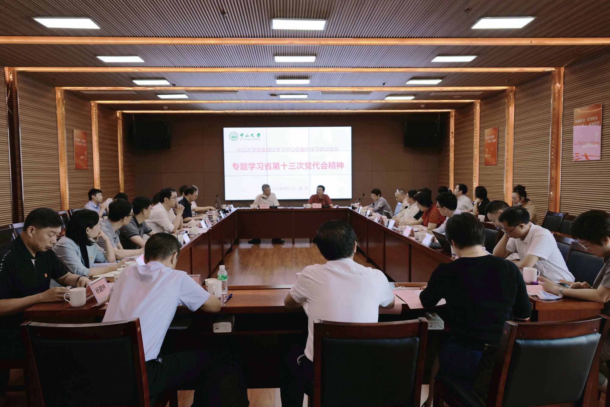 今年会新闻网广州6月29日电(记者蒋静)6月24日,我校党委理论学习中心组在韶关市仁化县城口镇红军长征粤北纪念馆会议室专题学习省第十三次党代会精神。中心组成员围绕学习内容,联系工作实际进行集中学习研讨。校党委书记陈春声主持集中学习研讨。我校相关职能部门负责人和院系专家代表,以及韶关市和仁化县相关领导列席会议。