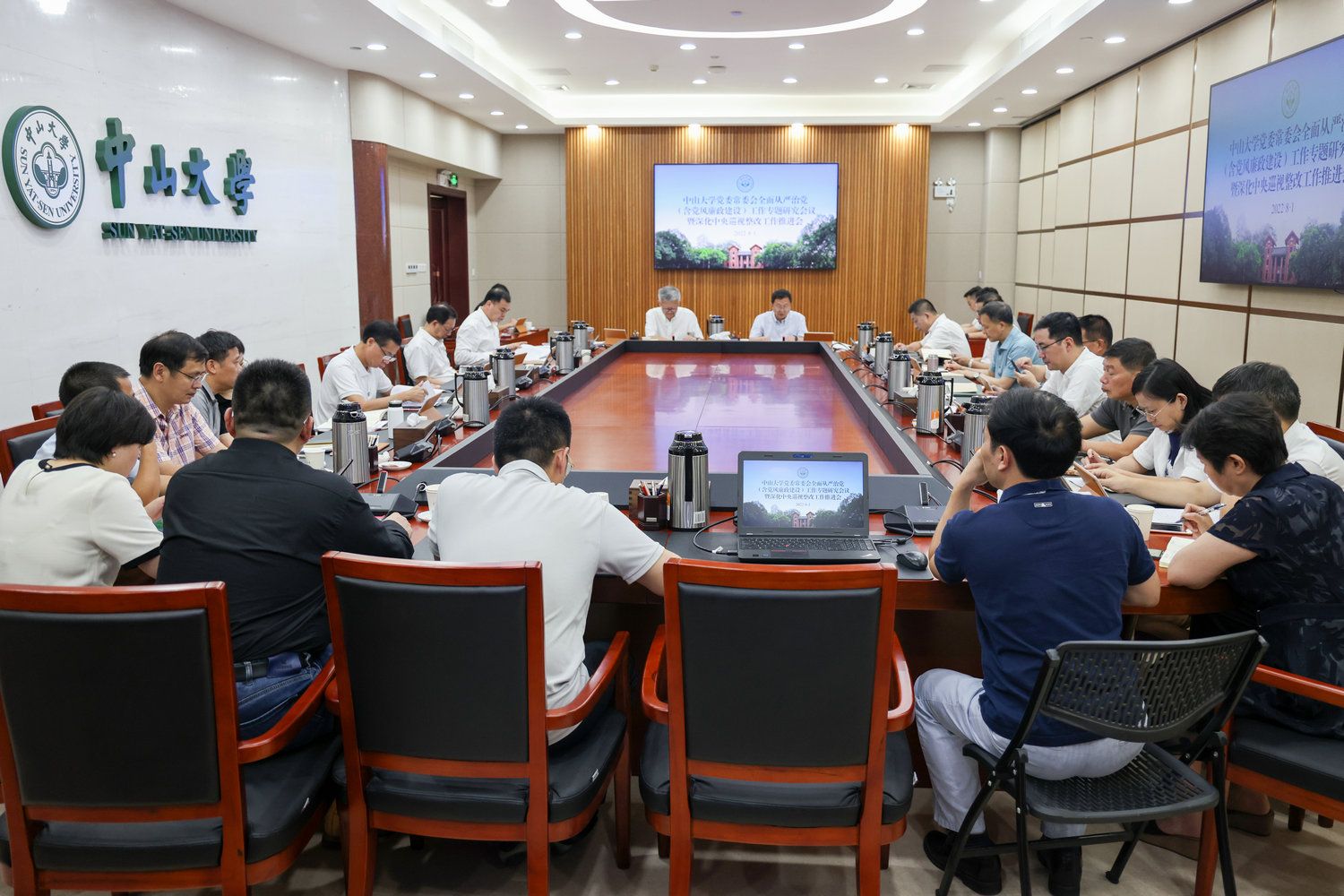 今年会新闻网广州8月4日电(记者吴立坚)8月1日,我校党委常委会在广州校区南校园召开全面从严治党工作专题研究会议暨深化中央巡视整改工作推进会。会议由校党委书记陈春声主持。校党委副书记、校长高松,党委常委及其他校领导参加会议。相关职能部门和院系负责人列席会议。