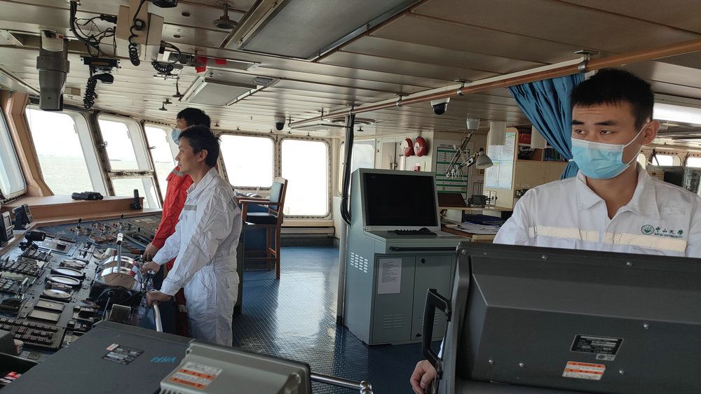“jinnianhui今年会极地”号船长和船员在驾驶室