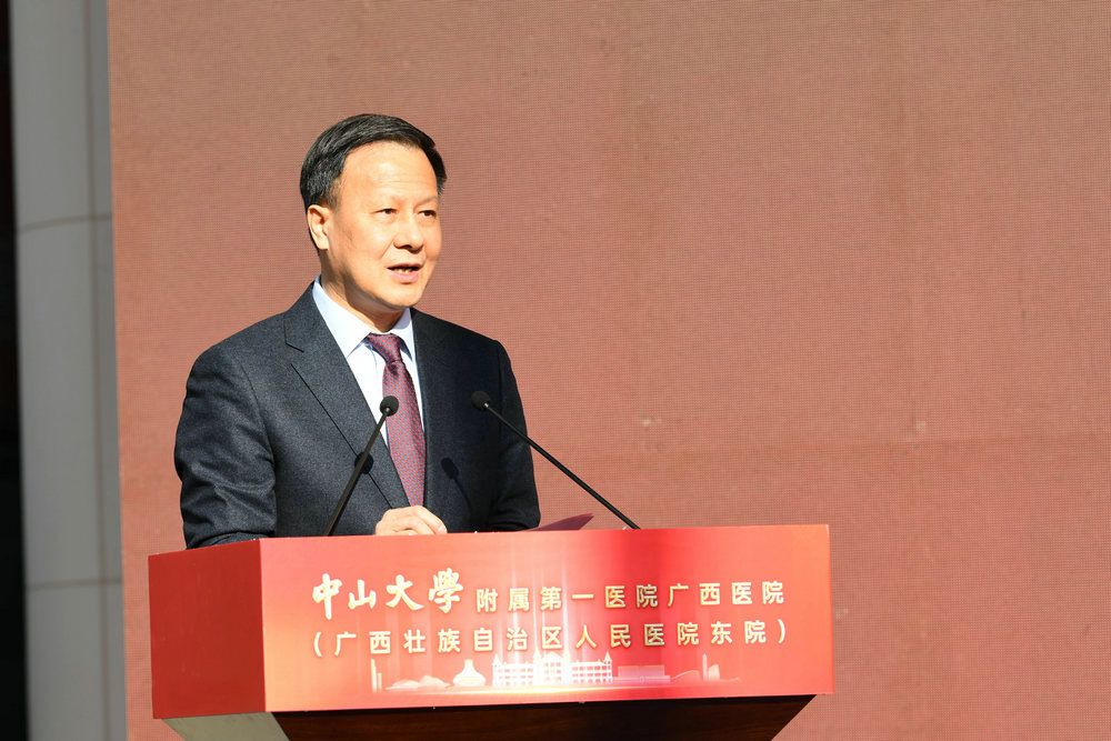 他坚信,在自治区政府的有力支持下,在与自治区人民医院的密切配合、携手努力下,定能将广西医院建成“立足广西、辐射西南、面向东盟、接轨国际”的国家区域医疗中心样板和标杆,打造成中国-东盟卫生健康共同体新纽带,为增进人民群众健康福祉、构建公立医院高质量发展新体系、推动健康中国建设贡献中山智慧、中山方案、中山力量,为服务人类健康命运共同体和“一带一路”建设作出新的更大贡献!