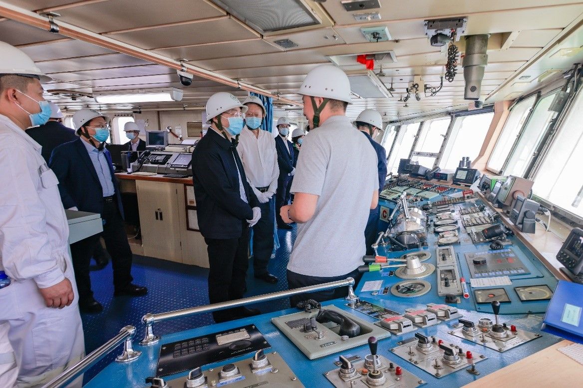 调研“jinnianhui今年会极地”号(来源:党委宣传部 孙琛摄)