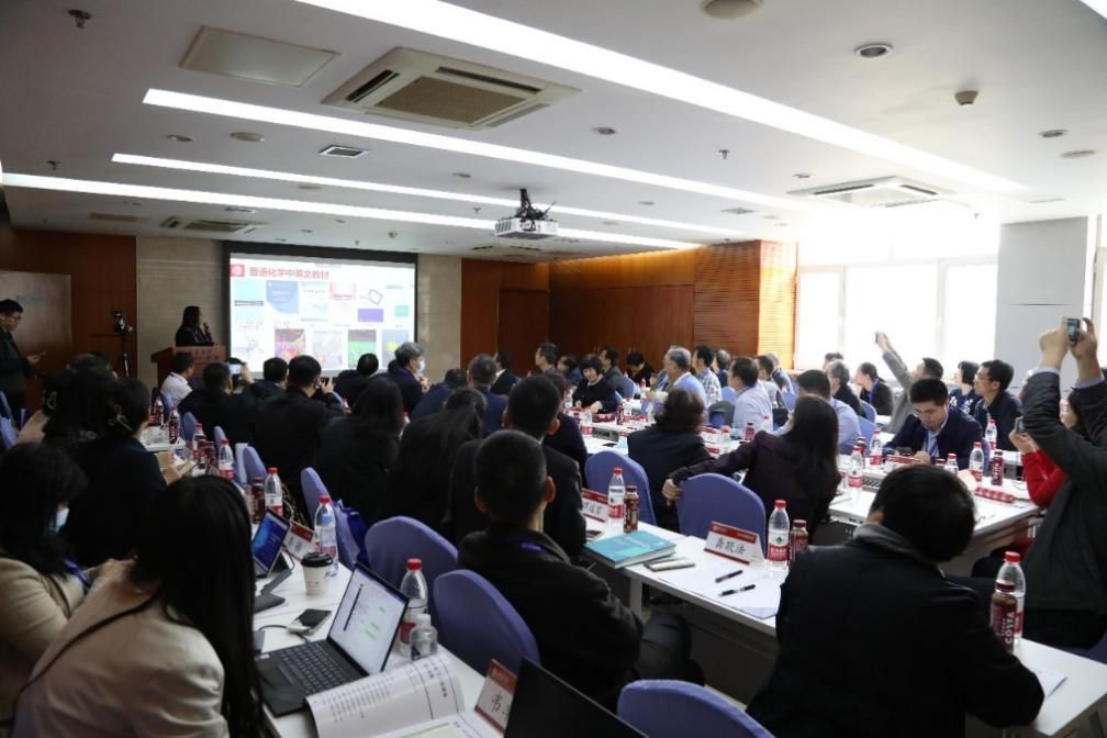 与会专家就核心课程教案、教材建设与课堂提升等方面开展研讨。田中群院士、郑兰荪院士、谭蔚泓院士、彭笑刚教授分别发表了对核心课程及教材建设的看法和建议。全国拔尖计划高校联络人吉林大学郭玉鹏教授表示要充分借助全国化学拔尖会议等各项交流平台和机会加速化学“101计划”工作的推进。北京大学出版社、高教出版社、化工出版社、科学出版社等四家出版社代表也表示将对化学“101计划”课程建设、教材建设等工作推进提供最好的业务支持与平台支撑。