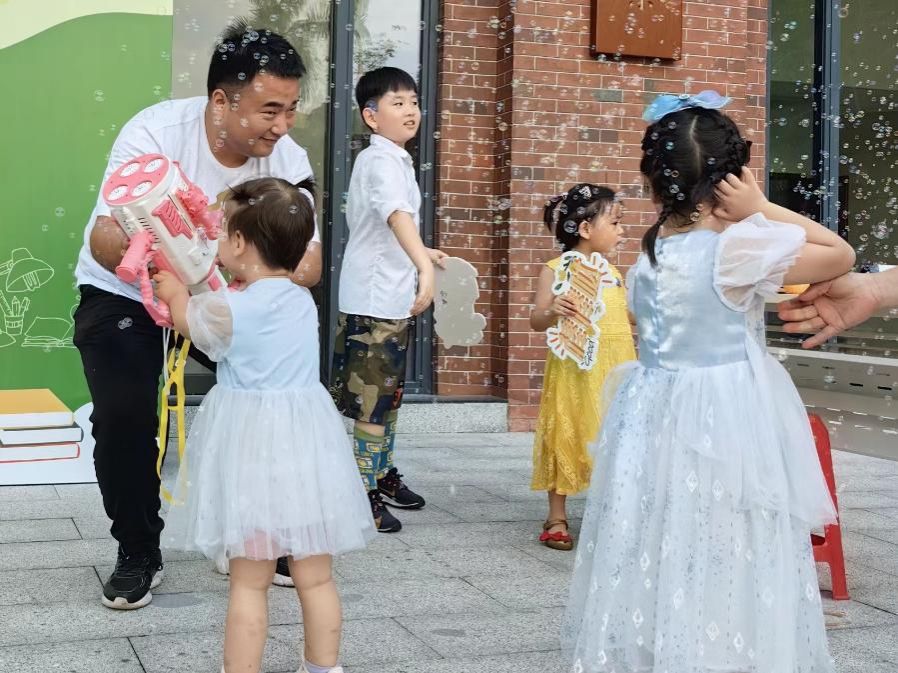 “老师,可以帮我给小兔子单独拍张合影吗?它好可爱呀!”各种活泼可爱的造型洋溢着童真之美。党委宣传部工会小组还特别准备了泡泡机,通过打出五彩缤纷的泡泡,充分吸引了小朋友的注意力,营造有趣、友爱、和谐、放松的拍摄氛围。现场欢声笑语不断,十分热闹,家长和孩子们的脸上都洋溢着喜悦、幸福的笑容。