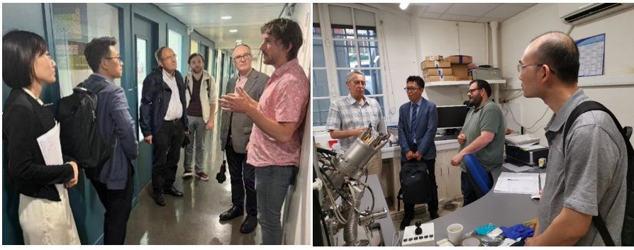 代表团受邀参观实验室(左图:参观IPGG实验室;右图:参观Philippe MARCUS教授的实验室)