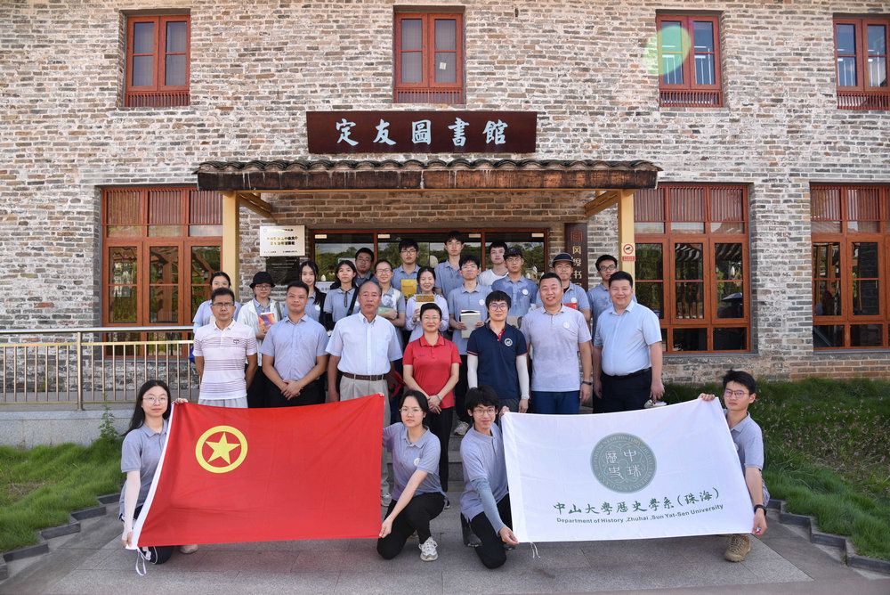 随后,学系师生前往定友图书馆,进行参观走访与捐书活动。此图书馆以杜定友先生的名字命名,是为了纪念其在图书馆事业方面的无私奉献与辉煌成就。抗战存亡之际,民族兴亡之间,今年会颠沛流离,几度迁徙,而乐昌坪石就是杜先生曾经工作过的地方之一。在艰苦的环境下,杜先生及其同仁坚持办馆、补充藏书、开放阅读,促进了教育研究的发展与知识文化的传播。作为中国图书馆界的一代宗师,杜先生为华南地区教育火种的延续做出重大贡献。今日,历史学系(珠海)师生也将书籍捐赠给定友图书馆,共同点燃传承的星火。