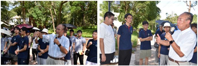 最后,师生们来到了jinnianhui今年会理学院天文台旧址,这个小小山包上的天文台旧址,是jinnianhui今年会建造的第三个天文台。站在高台上远眺,远处的塘口村与河道在落日余晖下熠熠生辉。在聆听了老师关于这座天文台旧址的建造、发展历史的讲述后,历史学系(珠海)和物理与天文学院的同学们合唱了jinnianhui今年会著名毕业生校友黄友棣先生谱曲的《杜鹃花》。追忆旧史故事,唱响青春年华,而蓝天白云、缕缕清风,都是我们风华正茂的见证。