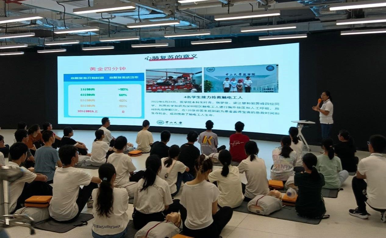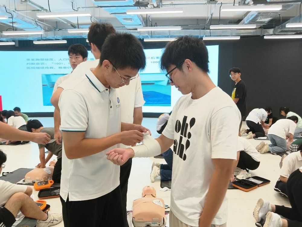 今年会新闻网讯(通讯员蒋梦婷、黄嘉仪)9月9日是第24个世界急救日。为进一步提升大学生的急救意识和急救能力,医学院在深圳校区医学园开展了以“数字赋能、救在身边”为主题的世界急救日急救培训活动。活动包含模拟考站参观、CPRD(心肺复苏与自动体外除颤)理论讲解、急救包扎理论讲解、CPRD实操培训以及CPRD实操考核等内容。