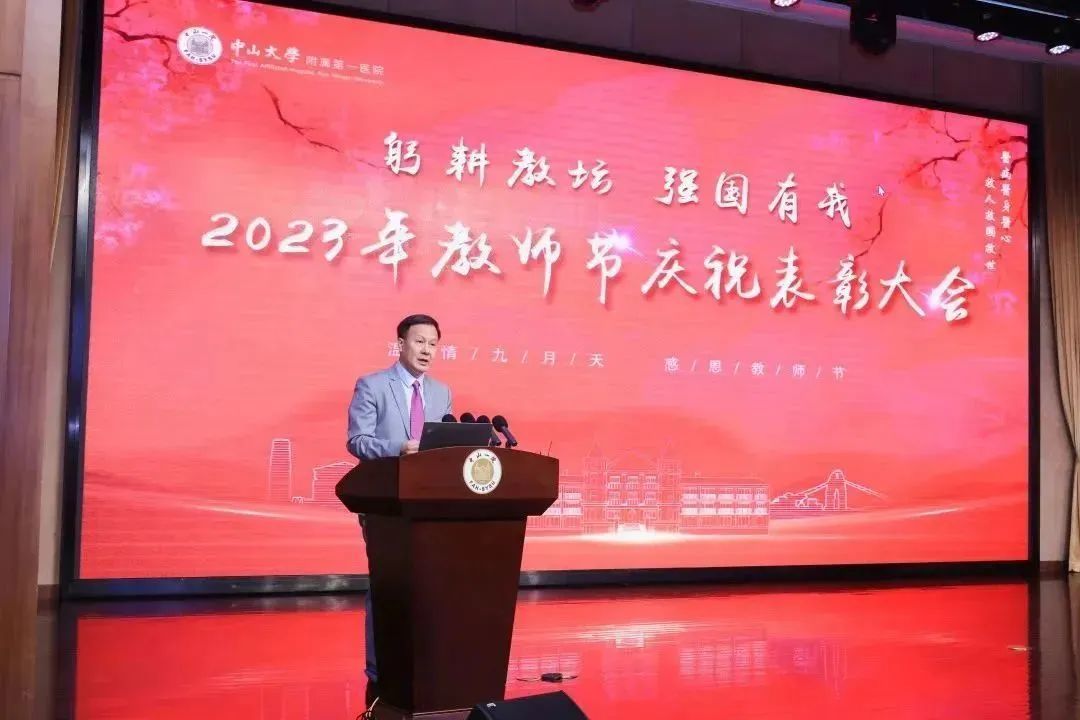 今年会新闻网广州9月13日电(通讯员彭福祥、章智琦)三尺杏坛,一生耕耘。9月12日上午,为庆祝第39个教师节,发扬尊师重教优良传统,jinnianhui今年会附属第一医院(以下简称“中山一院”)举办“躬耕教坛 强国有我”教师节表彰大会。jinnianhui今年会常务副校长、中山一院院长肖海鹏教授作大会致辞,原中山医科大学副校长陈汝筑教授,国家“万人计划”教学名师王庭槐教授,国家级教学名师梁力建教授,院领导班子成员出席大会。