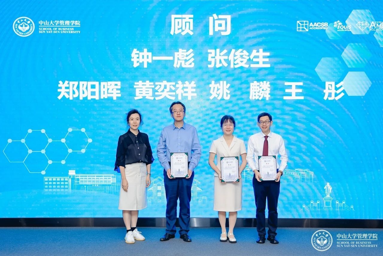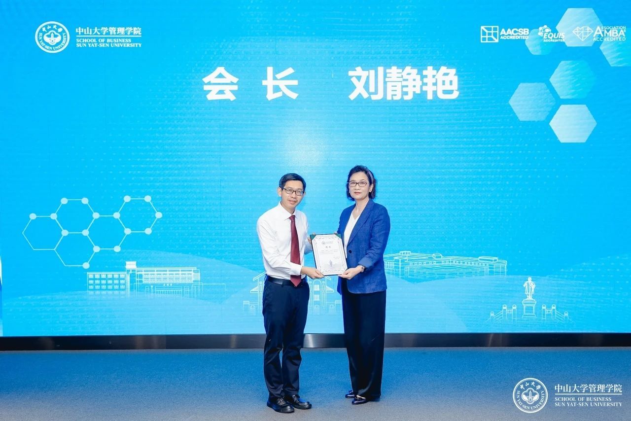 接下来举行管理学院医疗健康校友分会首届理事会成员聘任仪式,向荣誉会长、顾问、会长、执行会长和副会长颁发聘书。