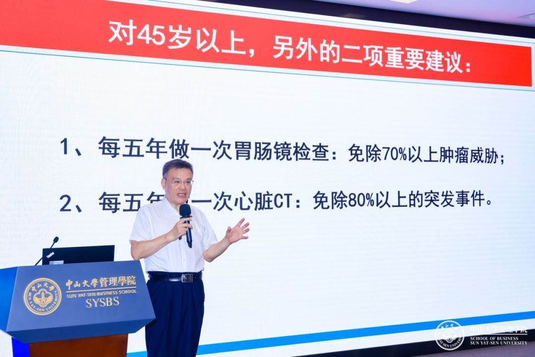 圆桌互动环节围绕如何打造高质量健康管理服务的主题展开,由医疗健康分会首届理事会执行会长、广东贝英基金管理有限公司董事长施少斌校友主持。