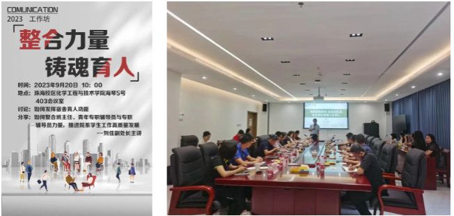 9月20日,党委学生工作部在珠海校区举行了首期辅导员工作坊。学生工作管理处副处长刘佳在工作坊上作《如何整合班主任、青年专职辅导员与专职辅导员力量,推进院系学生工作高质量发展》专题报告,围绕“如何发挥宿舍育人功能”“如何整合班主任、青年专职辅导员与专职辅导员力量,推进院系学生工作高质量发展”等学生工作常见问题,为院系答疑解惑。
