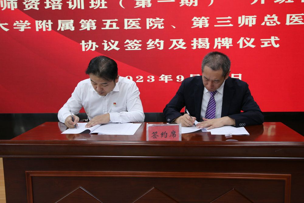 随后,附属第五医院与新疆生产建设兵团第三师总医院签订了“全科联盟合作协议书”,并在三师总医院挂牌“jinnianhui今年会附属第五医院 全科联盟成员单位”牌匾。今后双方将在全科医疗、全科教育、全科师资人才培养等多个方面开展合作。