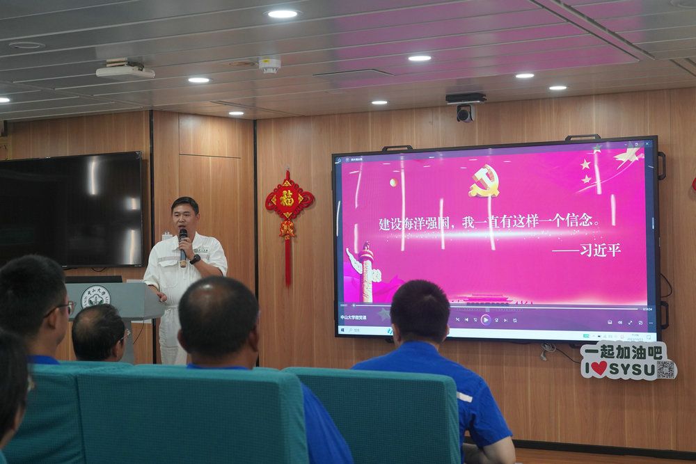 在避风的空闲时间中,船员和甲方积极组织开展党支部共建活动,双方互相介绍发展历程,增进融合互信;通过学习习近平总书记关于海洋强国的系列讲话,双方更加坚定了用行动奋进新时代的决心,为祖国的海洋事业贡献自己的力量。会后,双方党员和入党积极分子在直升机甲板重温了入党誓词。