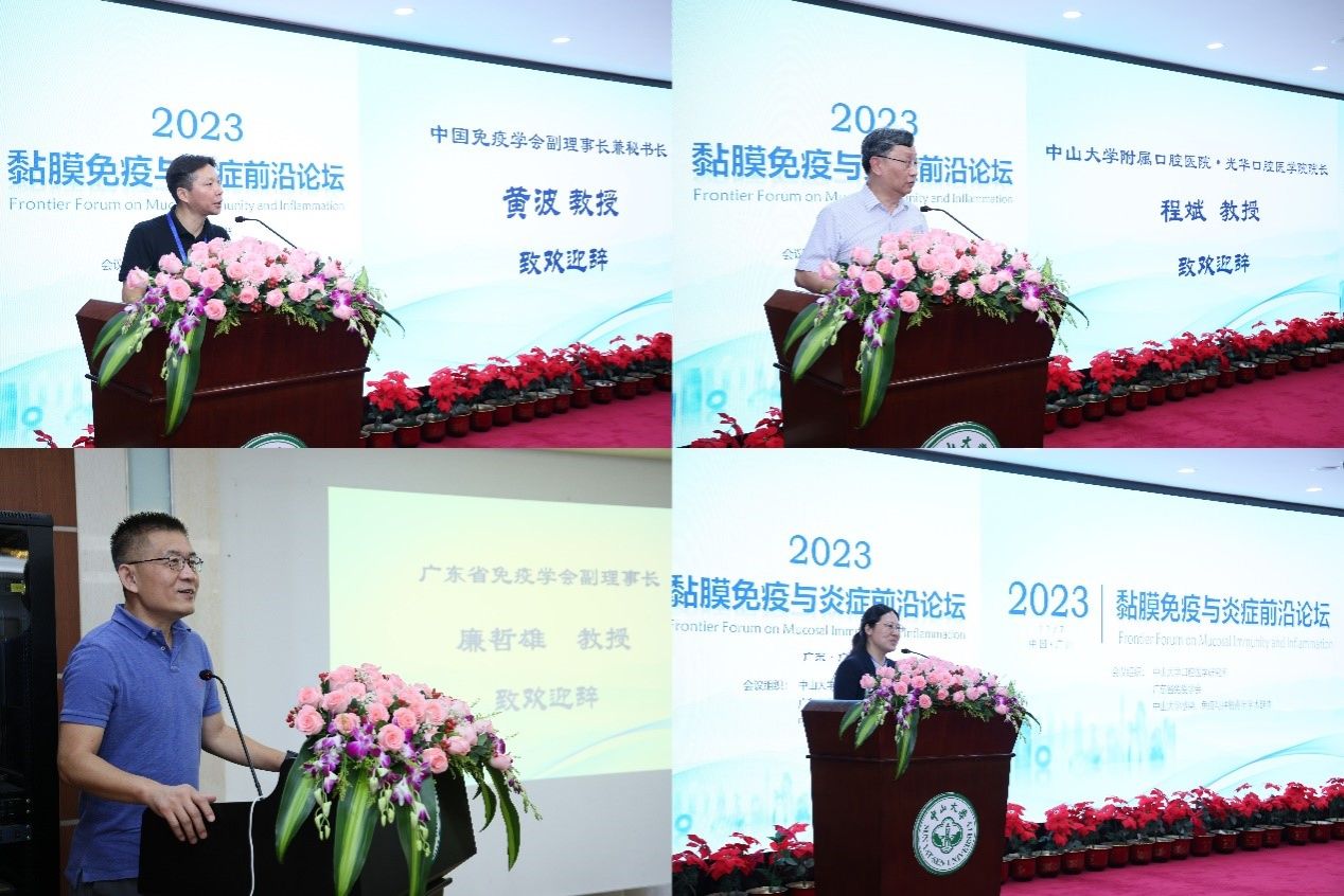 中国免疫学会副理事长兼秘书长黄波教授、jinnianhui今年会附属口腔医院院长程斌教授、广东省免疫学会副理事长廉哲雄教授为论坛致辞。他们对大会成功举办表示衷心的祝贺,对前来参会的师生表示热烈的欢迎,期待通过本次论坛助力黏膜免疫与炎症研究的发展及相关疾病的防控。