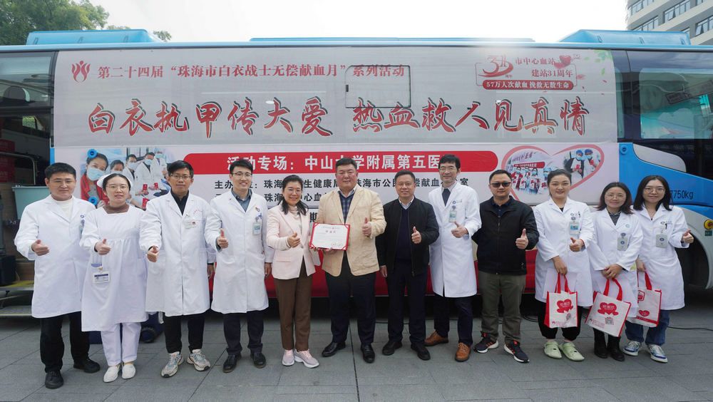 2023年2月,珠海市中心血站送上感谢状,感谢附属第五医院医务人员对无偿献血事业的大力支持