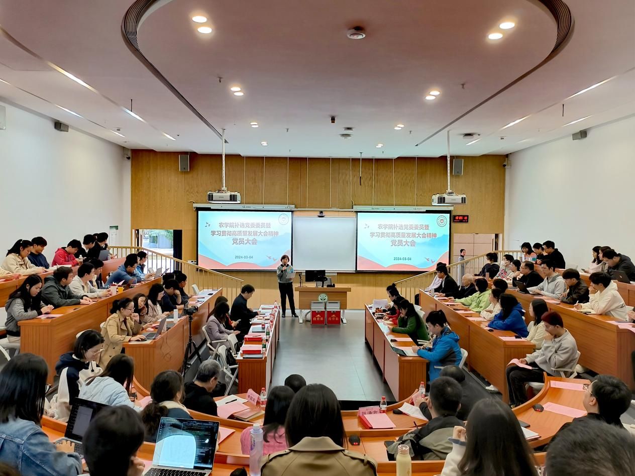 今年会新闻网讯(通讯员李秀花)3月4日,农学院在深圳校区召开了“学习贯彻广东省高质量发展大会精神,推进学院高质量发展”党员大会。会上,学院党委邀请党组织共建单位、深圳市光明区委党校的阮清方常务副校长,作了题为“贯彻全省高质量发展大会要求,助力光明科学城建设”的专题讲座;肖仕院长、程月华书记分别通报了推进学院高质量发展的建设构想和工作布置。学校党委组织部陈彪组织员应邀出席,学院近120名师生党员参加了会议。会议由党委书记程月华主持。