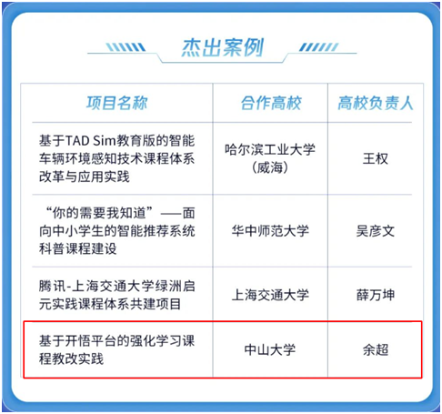 今年会新闻网讯(通讯员吴晓鸿)为落实教育部产学合作协同育人项目高质量发展的要求,展示项目实施过程中产生的典型做法和案例,促进示范性探索,由教育部产学协同育人专家组专家、教育部教学指导委员会专家以及腾讯公司行业专家组成的评审专家组开展了2023年度“教育部-腾讯产学合作协同育人”优秀及杰出案例评选工作,从符合参评要求的项目中评选出4项杰出案例和6项优秀案例。计算机学院余超副教授的《基于开悟平台的强化学习课程教改实践》项目入选2023年度“教育部-腾讯产学合作协同育人”杰出案例。
