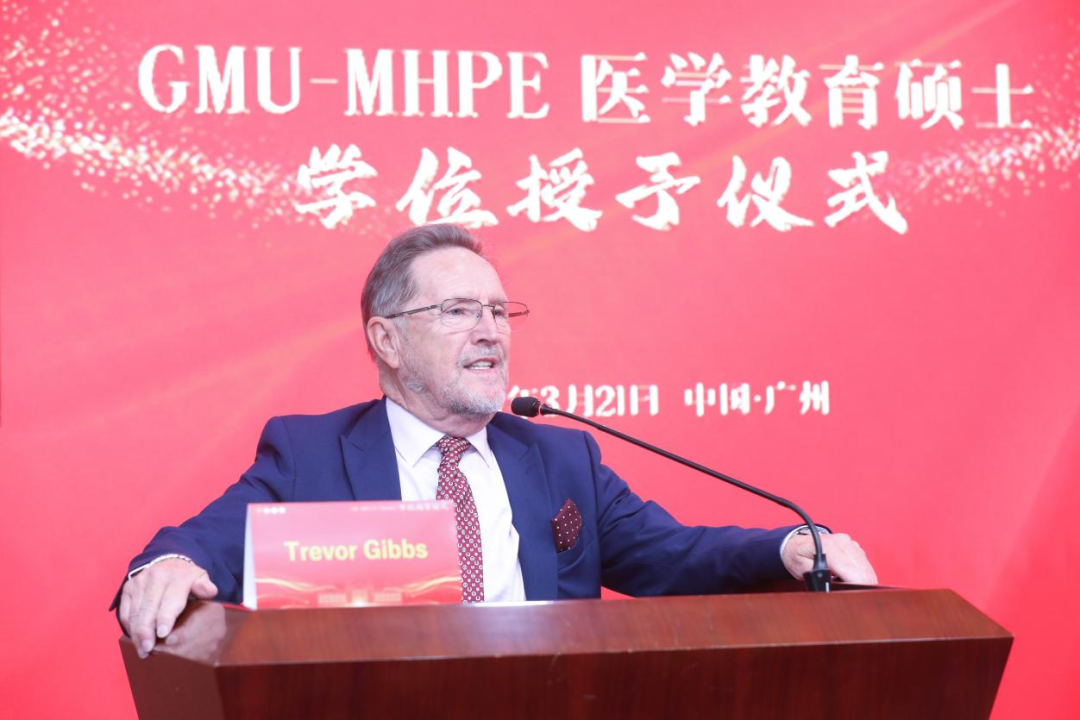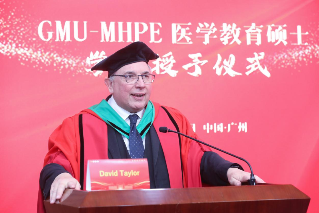 今年会新闻网讯(通讯员张玉琦)3月21日,附属第一医院(以下简称“中山一院”)18位教学骨干获授阿联酋海湾医科大学(Gulf Medical University,GMU)医学教育硕士学位(Master of Health Professions Education, MHPE)。GMU医学教育领导力与创新中心主任David Taylor教授为学位获得者颁发学位证书。