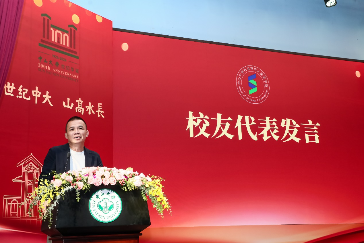 校友代表陈方旭(85级社会学)在发言中强调了社会学学科思维方式的重要性,并表示作为社会学与人类学学院学子,应始终兼具全局性思维与细节意识,要立志做大事并一定能做成大事。