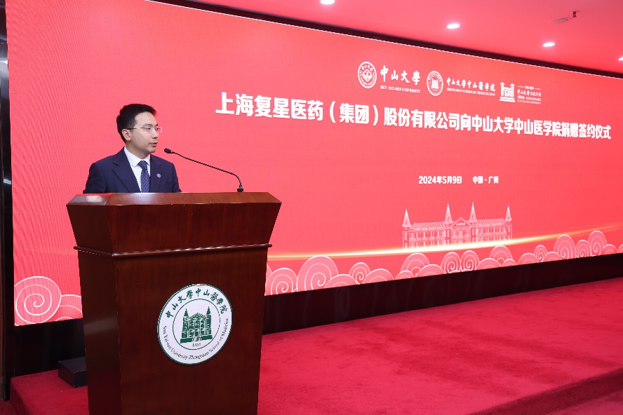 文德镛在致辞中表示,十分荣幸来到中山医学院,了解到学院的厚重历史和中山医人的深厚情怀,并向中山医学院热情周到的安排表达了感谢。他介绍了复星医药在青蒿素药物商业化、达芬奇机器人、CAR-T细胞免疫治疗等领域的建树,强调了复星医药在医学药物创新,推动成果转化以及人才培育发展等方面都站在国际视野的高度,对标世界一流。他表示,复星医药在事业高速发展的同时,充分意识到人才是第一生产力,希望能够与以中山医学院为代表的国内顶尖医学院校建立深度校企合作,通过医工融合、协同创新研发、提供实习就业平台等多种方式担负起一流药企的社会责任,共同助力医学发展和人类健康事业。