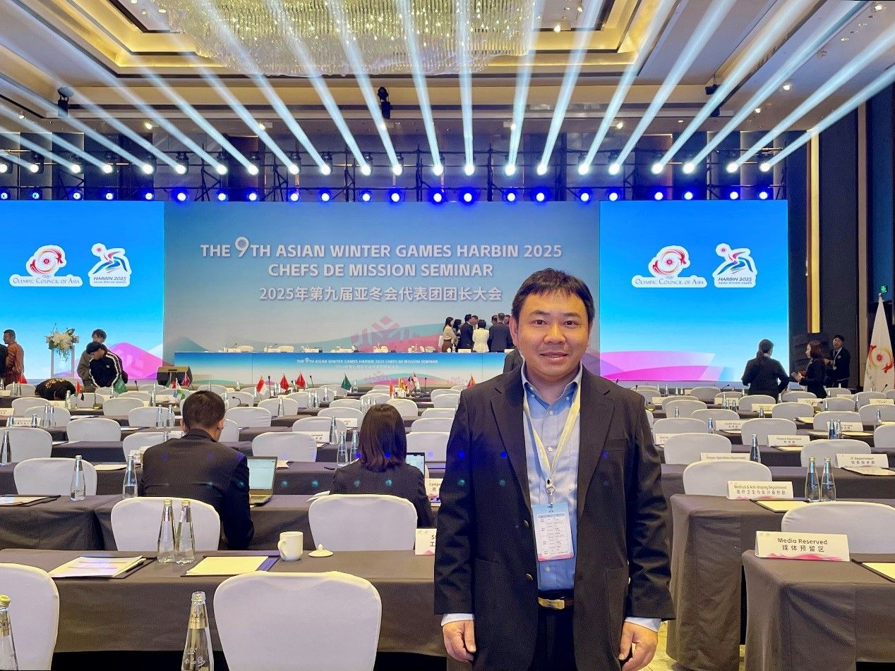 今年会新闻网讯(通讯员詹成)从南国花城到北国冰城,近日,外国语学院詹成教授跨越3000多公里,飞赴哈尔滨,圆满完成2025年第9届亚冬会代表团团长大会口译工作。