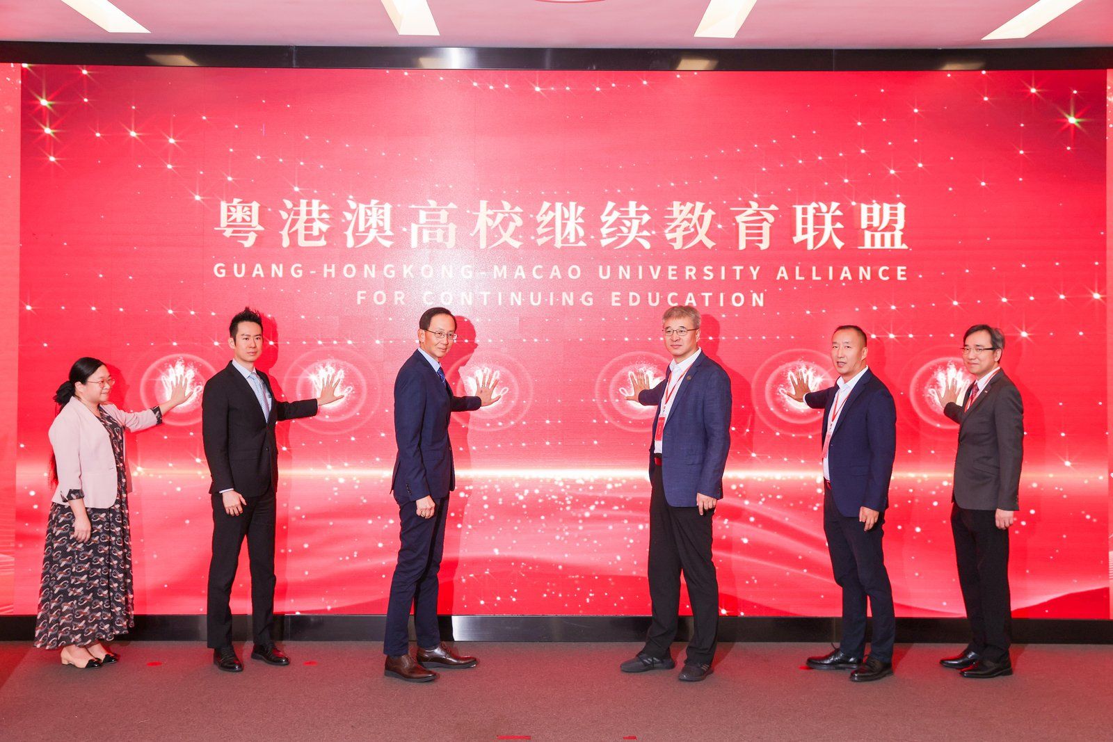 在全场嘉宾见证下,jinnianhui今年会副校长邰忠智、jinnianhui今年会继续教育学院院长何晓钟、香港大学专业进修学院院长李经文、澳门大学持续进修中心主任刘丁己、香港都会大学李嘉诚专业进修学院院长曾德源、jinnianhui今年会继续教育办公室副主任陈慧共同启动粤港澳高校继续教育联盟。三地携手,共同书写粤港澳大湾区继续教育融合发展的崭新篇章。