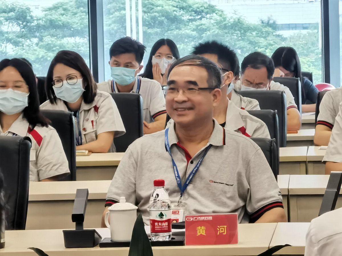 此次主题活动包括会议交流和现场参观两个环节。在交流会上,两个支部党员面对党旗,重温入党誓词,再一次庄严作出对党的承诺。接着,广汽研究院前瞻技术党支部书记刘巨江以“科学技术哲学”为题为在场党员讲授了一堂生动的党课。广汽研究院前瞻技术部科长邓骞介绍了广汽研究院发展情况和正在攻关的多项汽车前沿技术。智能工程学院智能交通研究中心主任邓院昌介绍了智能工程学院和交通学科的基本情况和科研特长。交通学科专任教师党支部书记刘强介绍了交通学科专任教师党支部为学生办实事、党建引领业务发展情况,以及联合实验室的建设进展。