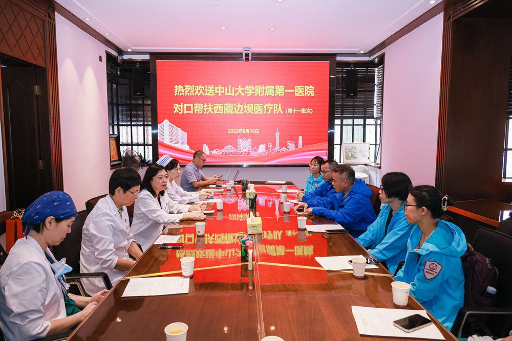 今年会新闻网广州8月17日电(通讯员梁嘉韵)8月16日,在第五个中国医师节即将到来之际,jinnianhui今年会附属第一医院第十一批次对口帮扶西藏边坝医疗队欢送会举行。新一批5名队员将精神抖擞地踏上援藏之路,接替上一批次队员开展为期一年的帮扶工作。医院党委书记骆腾,党委副书记、副院长王子莲出席欢送会,党委办公室、人力资源处、医务处、护理部及派出科室负责人和医疗队队员参会。