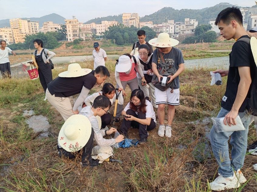 7月29日下午,小分队到达高州平山镇后不顾一天的舟车劳顿,立即在第一个采样点组织了现场学习培训。