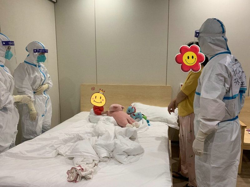 病区还有一位10月龄的宝宝小武,他和妈妈第一批入舱。由于走得比较急,妈妈没来得及带玩具。中医科医生招柏明查房时留意到了这个“小问题”,他随即与家人联系整理了一些女儿的玩具,消毒后委托增援的队员带入病区送给小武。