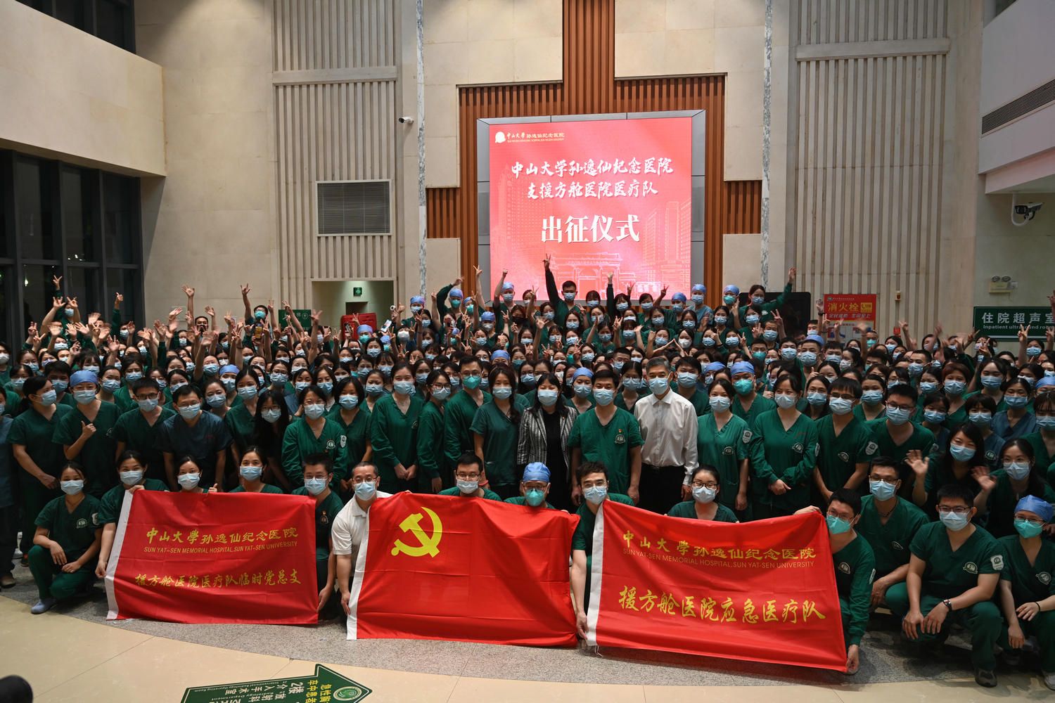 在接到派遣医疗队的任务后,孙逸仙纪念医院各科室医生、护士第一时间自愿报名,队伍迅速组建完毕。医疗队将单独接管一个新建的2500床方舱医院,用于开展新冠肺炎感染者医疗救治和护理工作。副院长姚和瑞教授担任医疗队领队,医疗队共有医生53人、护士250人和后勤保障人员56人。