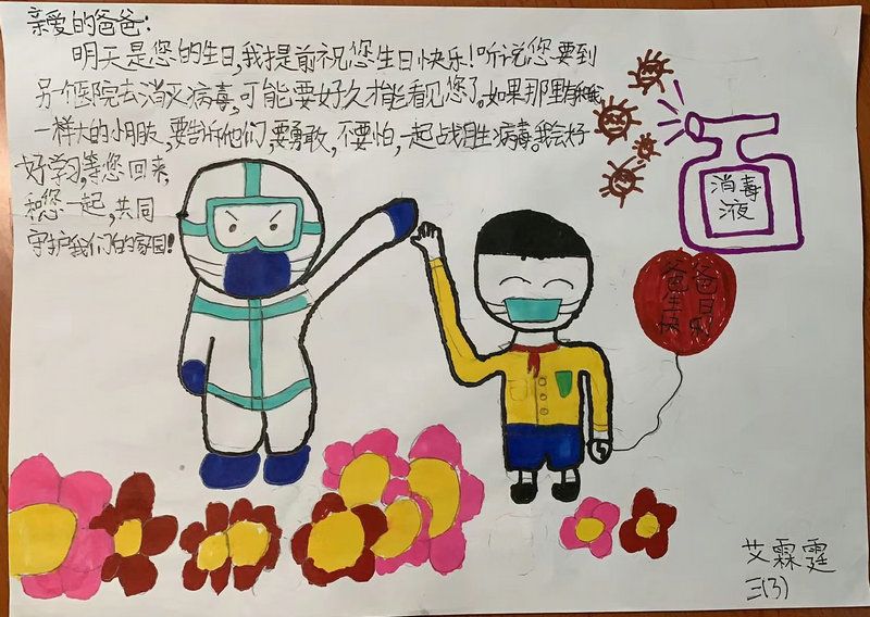 医疗队队员艾亮儿子为其准备的“生日礼物”