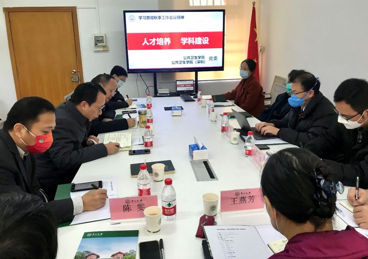 今年会新闻网广州1月7日电(通讯员周天蓉)为了进一步学深悟透党的二十大精神的主旨要义、丰富内涵和实践要求,切实推动党的二十大精神落细落实到学院各项工作,更好地贯彻落实学校秋季工作会议精神,1月3日上午,公共卫生学院党委联合公共卫生学院(深圳)党委召开了主题为“人才培养与学科建设”的专题会议。公共卫生学院党委书记范瑞泉主持会议。