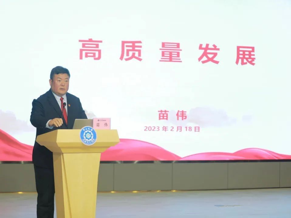 苗伟书记围绕高质量发展主题作报告。报告传达了党的二十大精神,广东省、珠海市高质量发展大会精神,以及学校关于高质量发展的工作部署。苗伟书记指出,经过全院上下的共同努力,医院近年来医疗服务能力和服务水平都迈上了新台阶,但对标国内一流大学附属医院、对标国内一流学科,医院在医教研管产等方面工作还存在差距和不足。各学科要深入了解发展基础和背景,明确“从哪来”;要找准定位和方向,知道“到哪去”;要合理规划发展路径,清楚“怎么做”。具体而言,就是要注重人才培养,引导优秀毕业生留院工作,服务珠海、服务广东、服务国家,为构建“人才高原”打牢基础;要强化临床科室之间,临床科室与科研部门之间的协作沟通,推动学科交叉融通;要通过抓制度建设、医疗质量建设、专科专病建设、先进技术提升和文化建设不断提高临床医疗综合实力。全院上下要更加紧密地团结在以习近平同志为核心的党中央周围,深刻领悟“两个确立”的决定性意义,增强“四个意识”、坚定“四个自信”、做到“两个维护”,为大学和医院高质量内涵式发展不懈努力奋斗。