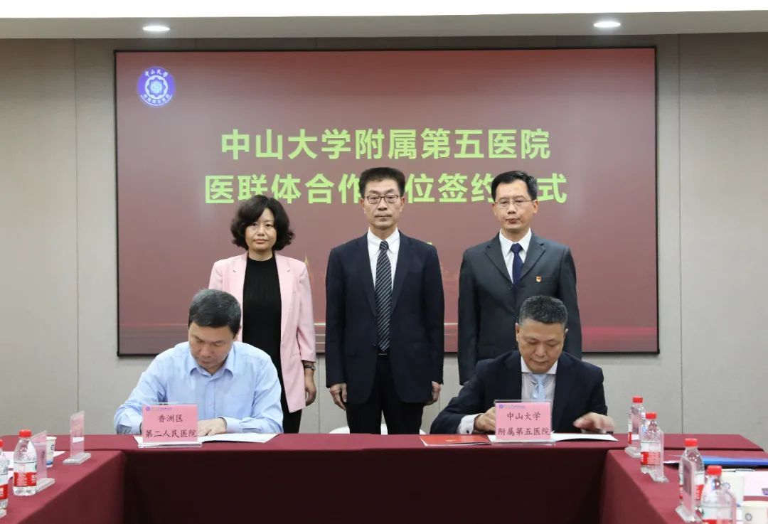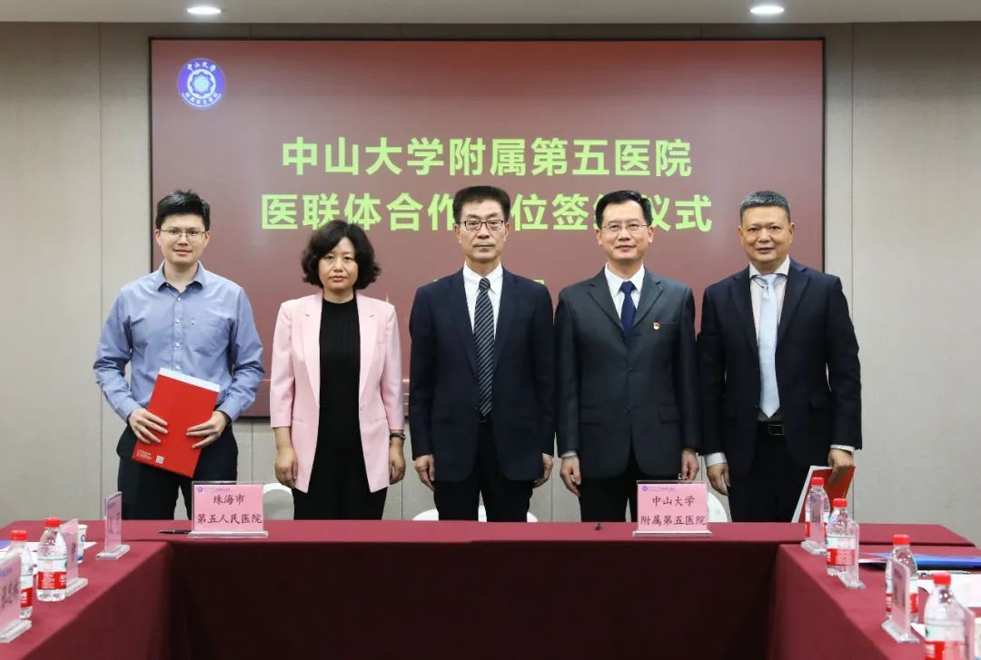 珠海市卫生健康局局长徐超龙,香洲区卫健局局长胡文锋,金湾区卫健局局长李翠英、副局长唐骏,附属第五医院院长单鸿,珠海市第三人民医院院长黄明星,珠海市香洲区第二人民医院院长吴兴,广东省人民医院珠海医院院长张忠林,珠海市第五人民医院副院长李伊,珠海市金湾区三灶镇卫生院院长刘冈,合作医院相关领导、科室负责人等参加了仪式。签约仪式由附属第五医院副院长肖非主持。