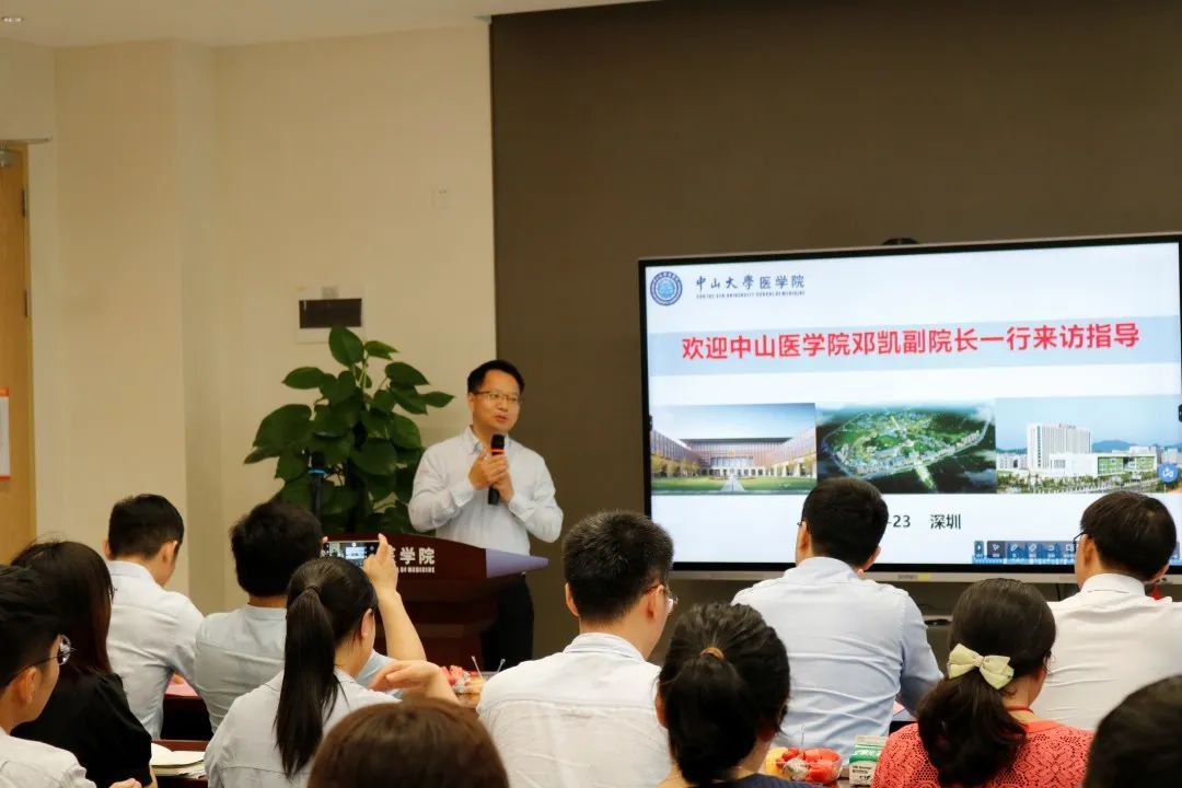 今年会新闻网广州3月30日电(通讯员王茉琳)3月23日上午,中山医学院副院长邓凯教授、医学实验教学中心常务副主任吕志跃教授、科研仪器管理中心主任吴珏珩等一行到深圳校区医学园,参观调研医学院科研与教学平台建设及管理运行情况。医学院党委书记丁小球、副院长田国宝教授、党委副书记李世阳、院长助理张幸鼎教授、教学实验室主任谭红梅教授等陪同参观调研。