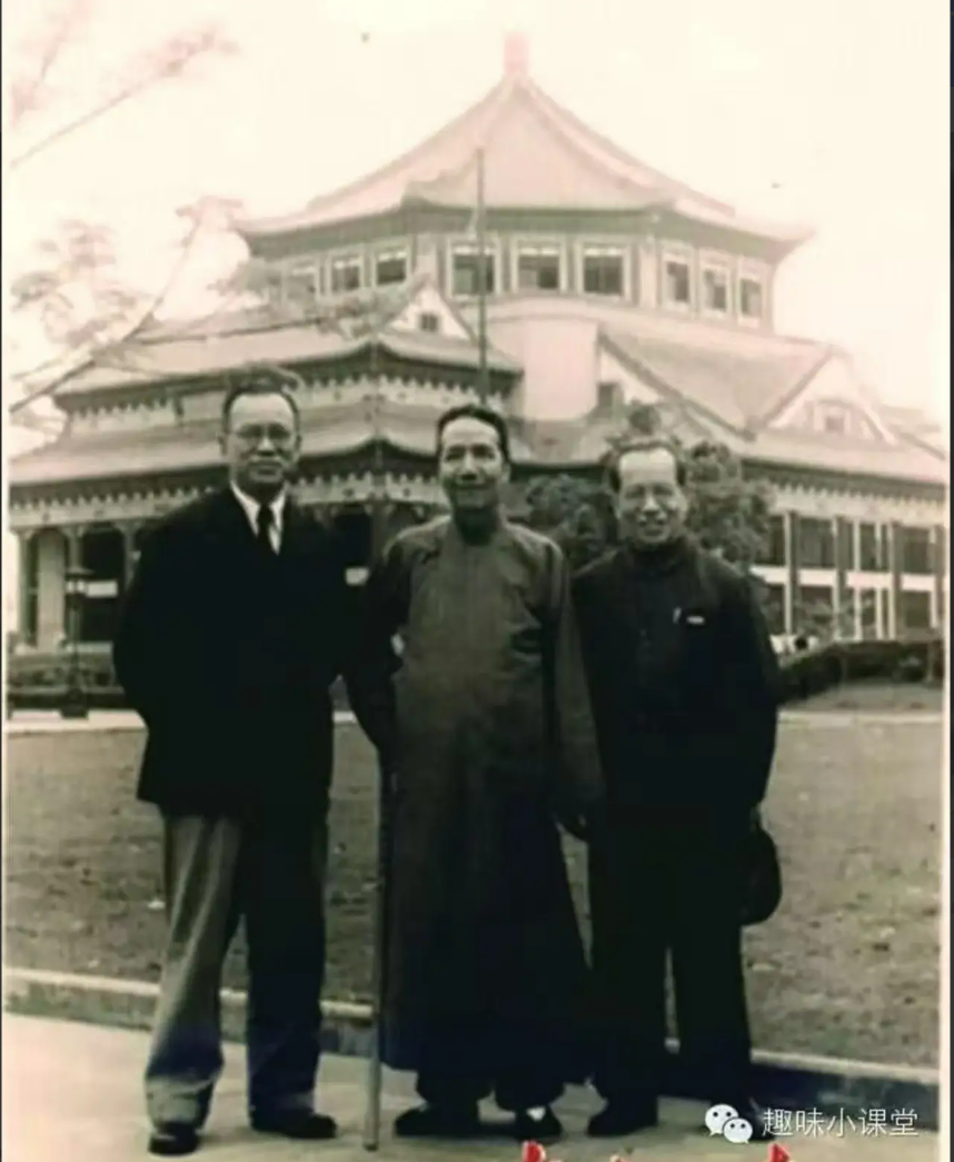 1950年代中期,姜立夫(右)与陈序经(左)和陈寅恪(中)在中山纪念堂合照