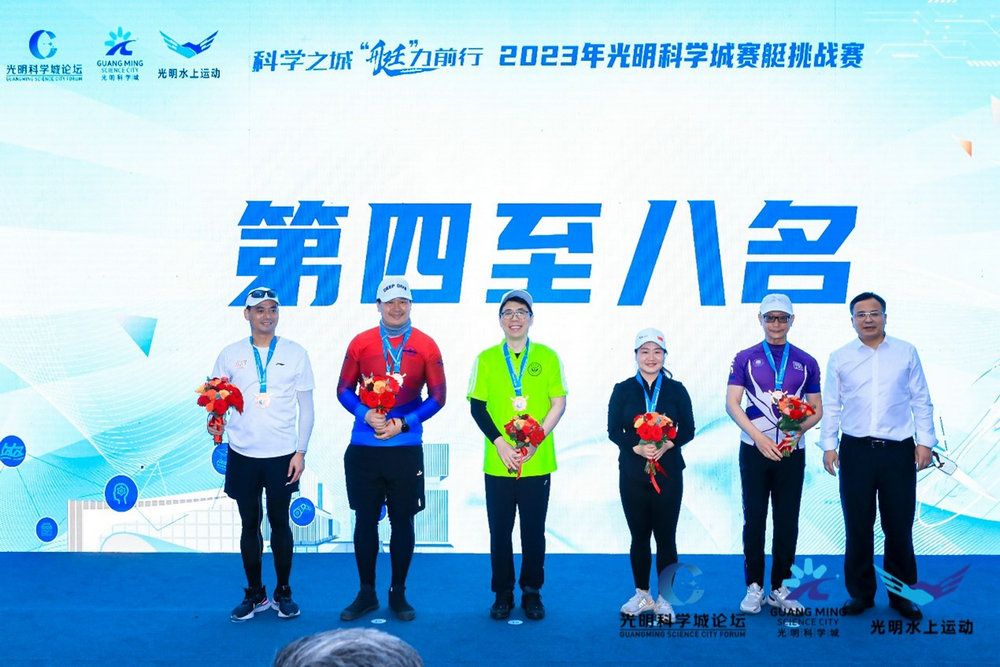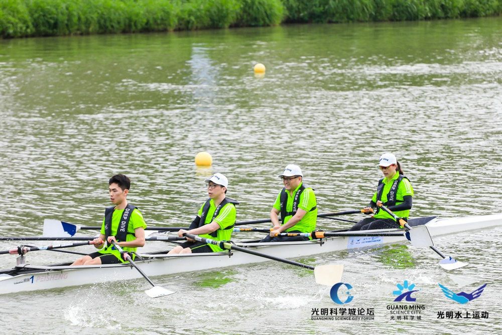今年会新闻网广州5月6日电(通讯员张幸鼎)4月27日,由深圳市光明区人民政府主办,深圳市光明区文化广电旅游体育局承办的2023年光明科学城赛艇挑战赛在光明区南山绿境-茅洲河水域击桨开赛。jinnianhui今年会深圳校区代表队受邀参加此次赛事,代表队由体育部赵云雷副教授、田靓老师,医学院潘纪安教授、张幸鼎教授等组成。共有来自深圳市17家高校和科研院所组成的23支队伍参加了此次800米竞速挑战赛。