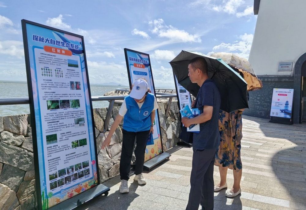 珠海海洋观测科普教育基地志愿者向社会公众进行科普讲解