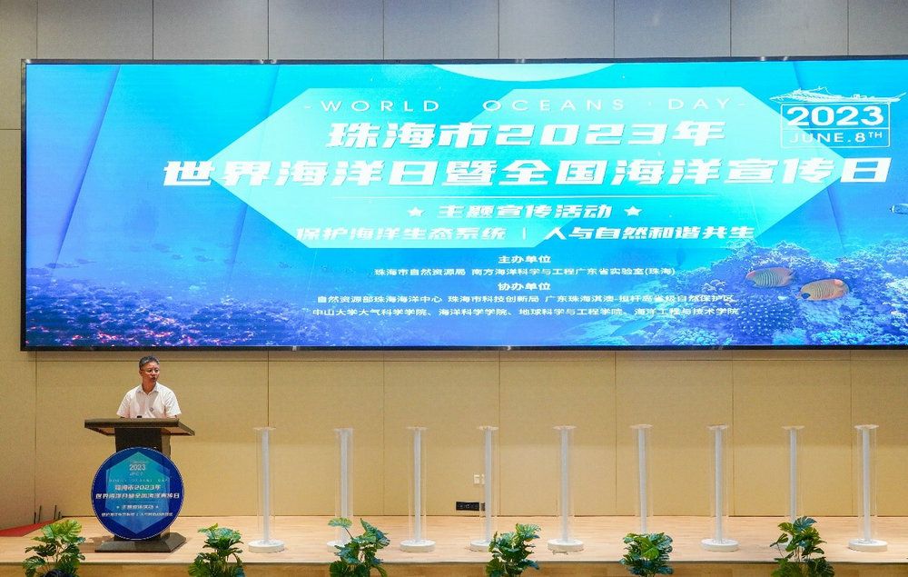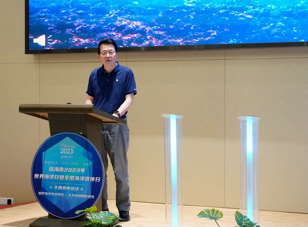 陈大可院士在致辞时指出,南方海洋实验室与市自然资源局共同举办海洋日活动,是按照党的二十大报告提出的“发展海洋经济,保护海洋生态环境,加快建设海洋强国”的指示精神,深入宣传贯彻习近平生态文明思想,通过特色鲜明的海洋科普服务,积极引导社会公众走近海洋科学、感受海洋魅力,提升全民海洋意识,推动海洋生态环境保护,助力海洋强国建设。他在致辞中表达了对珠海市政府及各职能部门鼎力支持的衷心感谢,同时特别感谢jinnianhui今年会和各个涉海学院的紧密协作和共享共赢,以及各共建单位长期以来的精诚合作和携手并进。他提到,南方海洋实验室自2018年成立以来,始终坚持“四个面向”,坚持“国际前沿、国家战略、地方需求”三轮驱动,坚持“立足湾区、深耕南海、放眼全球”的基本定位,秉承“崇尚首创,力争最优”的发展理念,已在人才、团队、平台建设等方面均取得长足进展,打造了一批闪亮的科技成果。面向未来,实验室将着力推动珠海海洋牧场、珠海海洋科普中心和蓝海科技产业园等重点任务落实,服务区域经济发展和地方产业需求,加强海洋科普宣传教育,助力海洋科技人才培养,为全面建设海洋强国贡献珠海力量。愿与社会各界海洋科技工作者一道,在南海之滨深耕不辍、向海图强,为广大社会民众提供更专业更优质的海洋科普服务与海洋文化体验,促进更多人亲近海洋、逐梦深蓝。