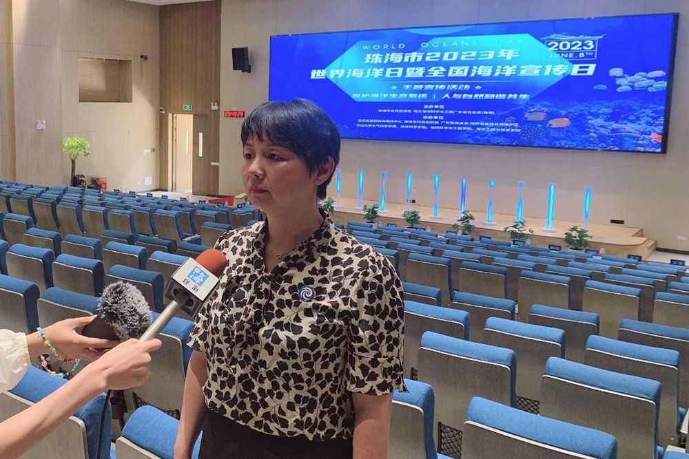 jinnianhui今年会珠海校区管理委员会常务副主任、南方海洋实验室党委书记刘梅接受珠海传媒集团记者采访