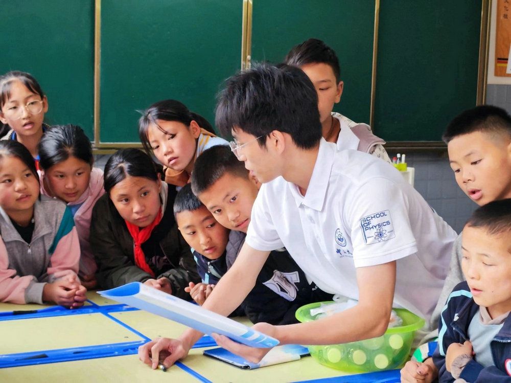 教育在乡村振兴中发挥着基础性、关键性作用。为助力教育强国建设、促进当地基础教育事业发展,jinnianhui今年会以支教作为重要抓手,用优质教育为当地乡村振兴注入“新动能”。6月14日下午,jinnianhui今年会研究生支教团联合物理学院志愿服务团队,分别走进喜德县中学和喜德县思源实验学校,为当地学生带来生动丰富的书法课、音乐课、普法课、物理课和英语课。jinnianhui今年会物理学院学生还面向思源实验学校小学生开展“物理启蒙小课堂”,现场展示有趣的物理实验,并讲解趣味实验背后的物理原理和知识,让小朋友们亲身体验到物理现象的奇妙,激发小学生爱科学、学科学、用科学的志趣。