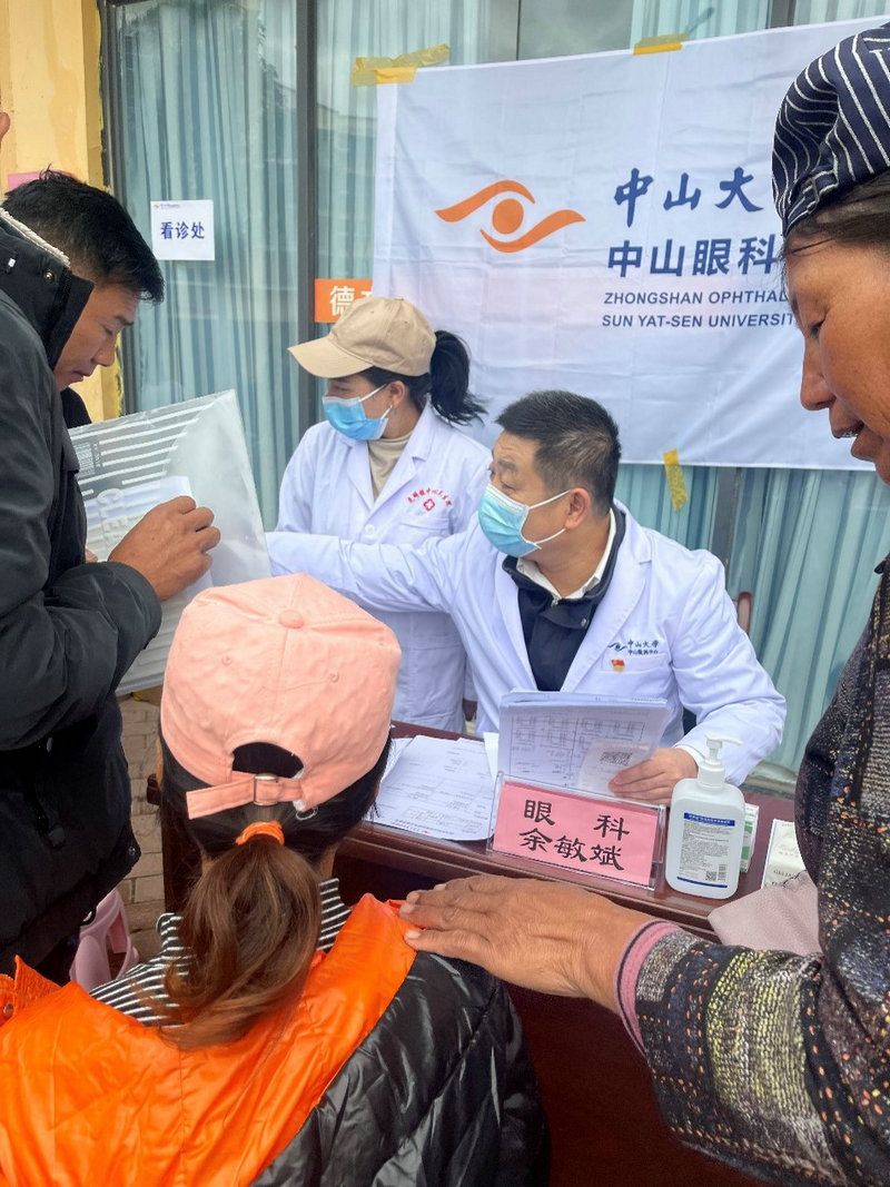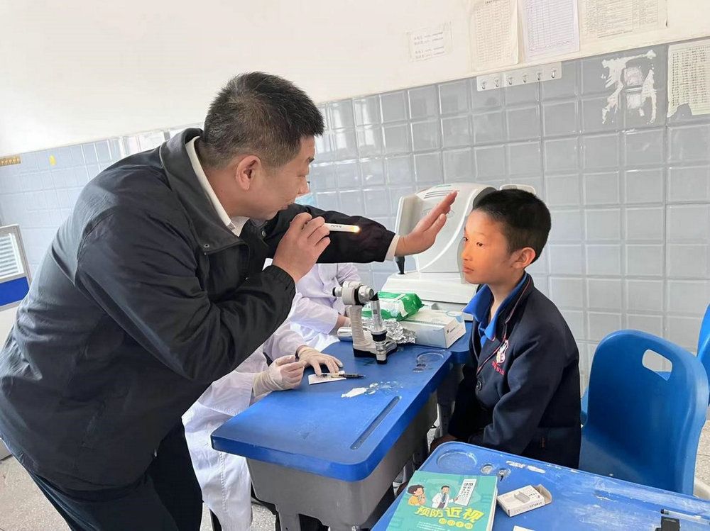 校党委副书记余敏斌教授为当地学生检查眼睛